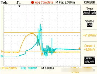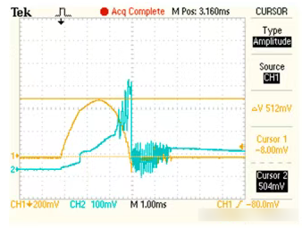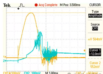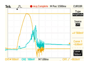 ● Оранжевый (CH1): напряжение восстановления/кривая TRV.
