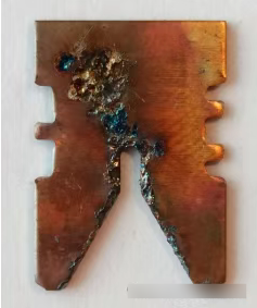 Форма сигнала более интенсивная с явным звоном после усечения. В дугогасительной камере наблюдается сильное почернение и скопление расплава.